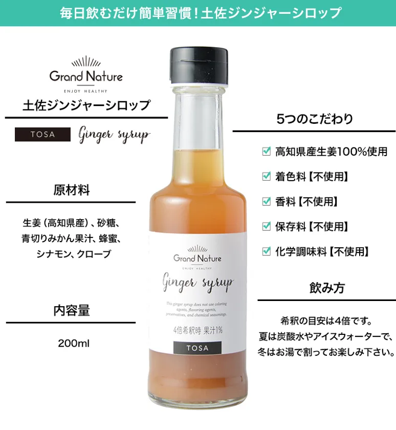 商品名 :土佐ジンジャーシロップ 200ml