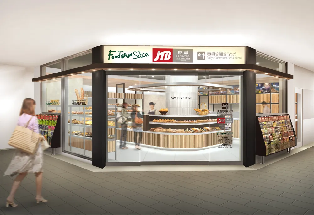 東京急行電鉄株式会社および株式会社東急百貨店(以下、東急百貨店)は、東急線各駅の駅構内スペース有効活用の一環として、沿線にお住まいの方や駅をご利用される方の利便性向上を目的に、東急百貨店が運営する小型食品専門店「東急フードショースライス」を従来よりもコンパクトにして開業します。