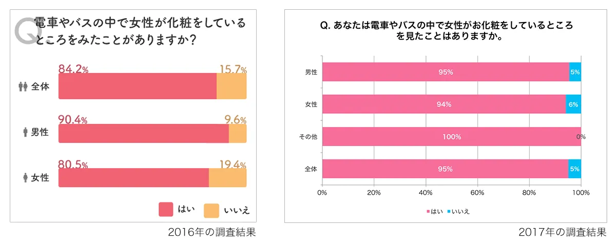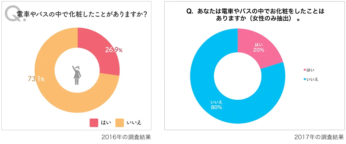これは、前述した2016年10月末頃の鉄道会社によるマナー向上広告から、「電車内での化粧はみっともないこと、迷惑なことだ」といったマイナスイメージが広まったことも原因として推測されます。