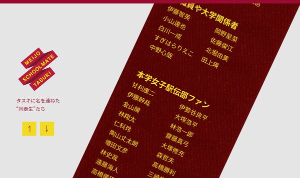 今回は応援してくださる皆さんの想いを「名城の名をかけて、ともに戦う“同走生”」として、1本のタスキに名を連ね応援する企画を実施します。