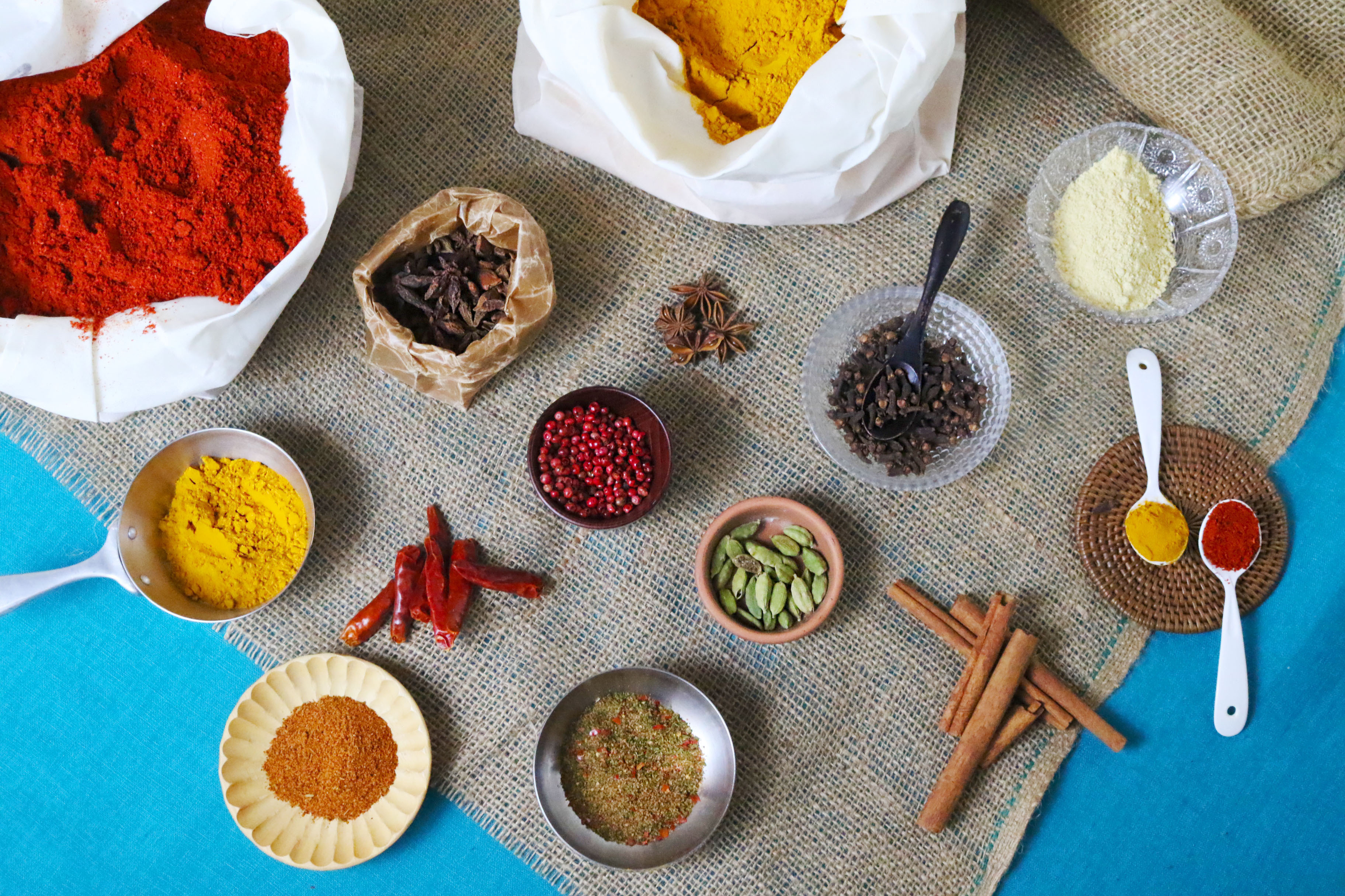 世界のスパイスをミックスした6種のスパイスが自由に選べるスパイスバー。シロノニワのメニューにはスパイスやハーブを効かせていますが、さらに好みのスパイスを追加すれば、より一層エスニックで奥深い味わいをお楽しみいただけます。