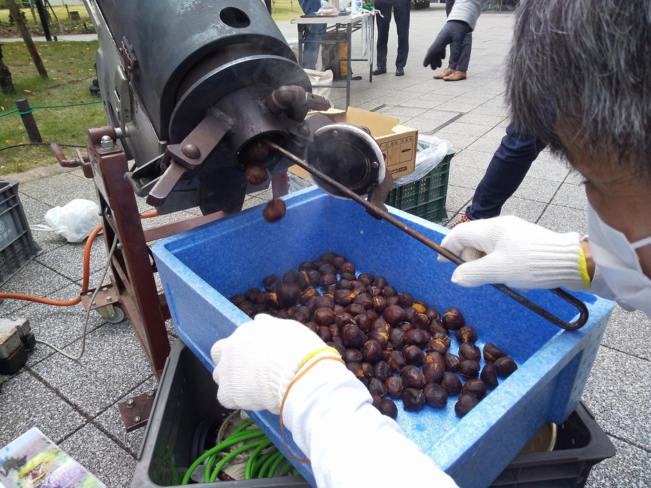 10/7(土)ヒルズマルシェで、ブランド栗として有名な小布施栗を、焼き栗として販売!