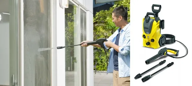 高圧洗浄機を使えば、数が多く広範囲な窓・網戸の掃除もあっと言う間に完了。