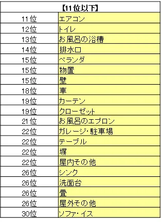 汚れが気になる場所『レンジフード・換気扇』が群を抜いて1位!