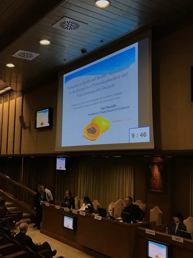 大里研究所(所在地:岐阜県揖斐郡、理事長:林 幸泰)は、大里研究所理事長の林 幸泰氏がバチカンで11月16日~18日に開催された世界的健康格差に関する国際会議にて「Education in Health and Healthy Alimentation for the Prevention of Neurodegenerative and Non-communicable Diseases(神経変性疾患及び非感染性疾患の予防に向けた健康および栄養教育)」をテーマに講演し、予防医学の重要性を訴えたことをお知らせいたします。