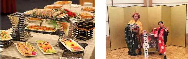 シェフによる「ローストビーフ」のカービングサービスをはじめ「カニ」、「両国名物ちゃんこ鍋」など、30種類以上の美味しいお料理の数々が食べ放題でソフトドリンク飲み放題付き。お正月気分をより一層盛りあげるパフォーマー石黒サンペイ氏のパフォーマンスも見どころです。ご家族、ご友人、親しい方々との新春の集いに是非ご利用ください。振舞い酒(樽酒)の無料サービスもございます。(なくなり次第終了)