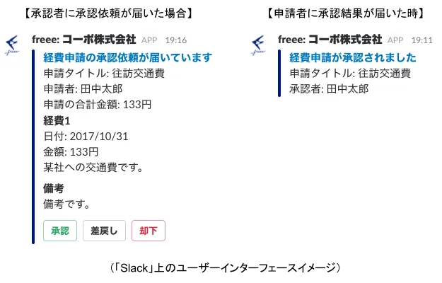freee は、当社が提供する「クラウド会計ソフト freee」が、Slack Technologies(米国、以下Slack)が提供する法人向けチャットサービス「Slack」とAPI連携したことをお知らせいたします。今回の連携により、「クラウド会計ソフト freee」で申請した経費精算、支払依頼、稟議ワークフロー(注1などの通知が「Slack」に届き、「Slack」上で承認や差戻し、却下などの操作を行えることになります。なお、「Slack」が会計業界とのAPI連携を行うのは国内初の事例(注2になります。