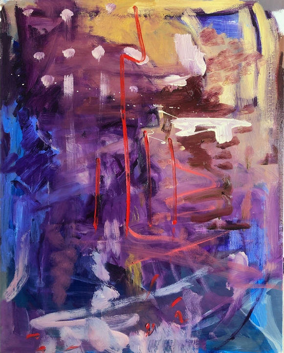 私の作品は、人間関係と、その社会の中で起こる物語を描いています。抽象的な作品、具象的な作品どちらを通しても、そこには常に人間の存在や物語が存在しています。その物語を、私の手で絵画として紡ぎ出すことが私の目標です。
