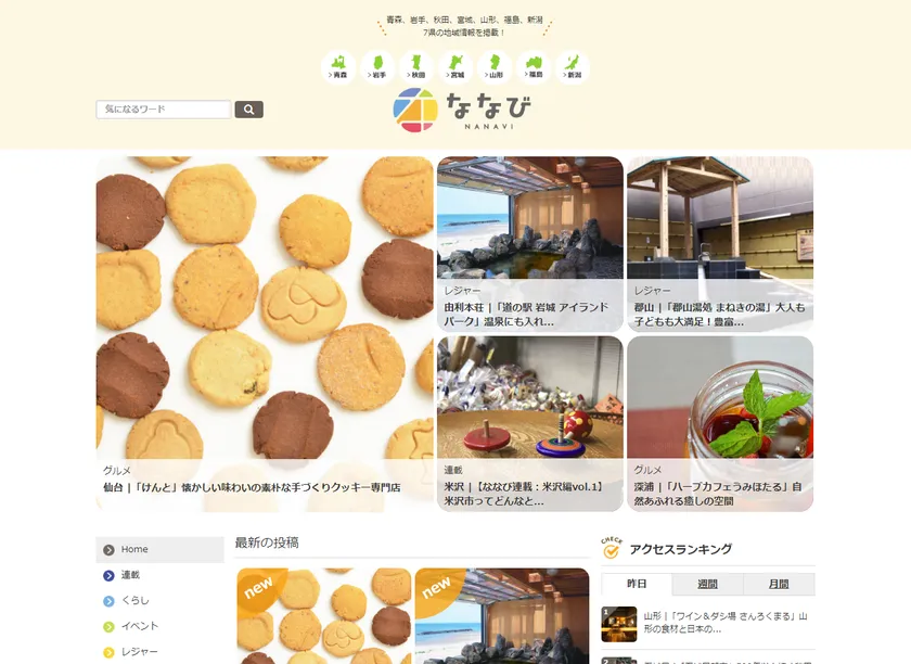 「ななび」は青森県・岩手県・秋田県・宮城県・山形県・福島県の東北6県と新潟県の情報を、現地からお届けする地域密着型情報サイトです。現地で直接取材した情報や、各自治体の発信する情報をもとに、地域住民の目線でその地域に根ざした情報を発信していきます。
