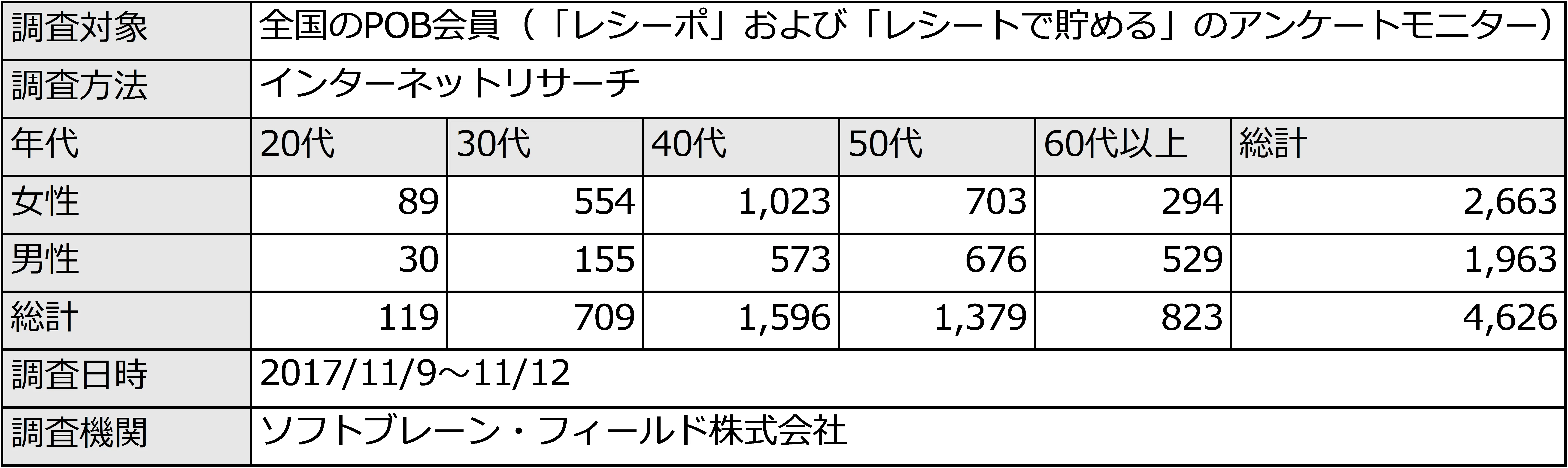 フィールド・クラウドソーシング事業を展開するソフトブレーン・フィールド株式会社(本社:東京都港区、代表取締役社長:木名瀬博)は、「レシーポ」(https://receipo.com/)および、株式会社クレディセゾンと共同事業で運営する「レシートで貯める」(https://aqfpob.com/)の、「Point of Buy(R)購買理由データ」(以下POB会員)アンケートモニター(N=4,626 名男女)を対象に、「おでんに関する調査」を2017年11月9日(木)~11月12日(日)にかけて実施しました。その結果をご報告いたします。(調査概要は資料4Pに記入)