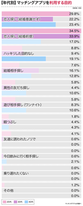 婚活目的のアプリ利用は「30代が5割」に対し「40代は3割」