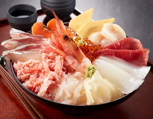 金沢一番の繁華街片町で、地元民、観光客ともに評価の高いお店「とも家」が自信を持ってお届けするあべのハルカス限定の豪華な海鮮丼。その名のとおりキラキラと輝く金箔がトッピングされ、富山湾の宝石白エビ、寒ブリ、カニなど、金沢の台所近江町市場直送の新鮮なネタが10種類も味わえます。