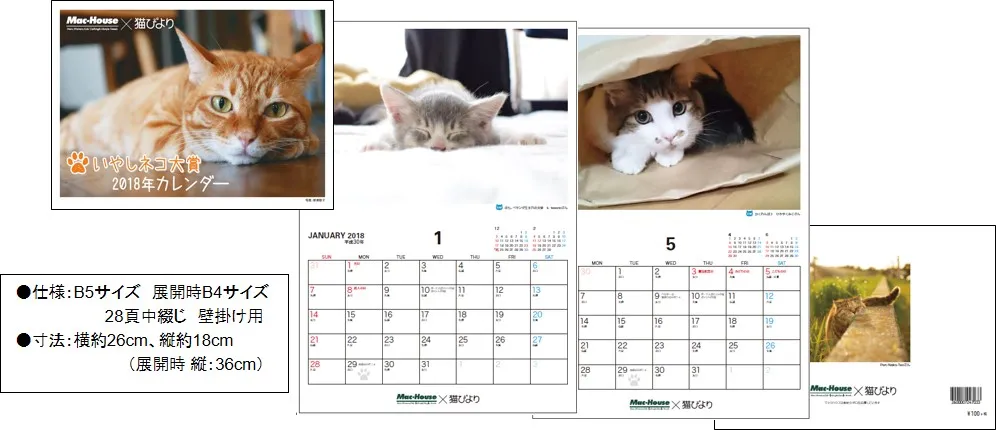 この度、株式会社マックハウス(本社:東京都杉並区/代表取締役社長:白土孝)は、自社が雑誌「猫びより」とコラボで運営する写真投稿サイト「いやしネコ大賞」より、2018年度版「いやしネコ大賞カレンダー」を発売いたします。