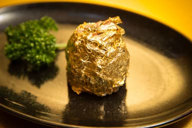 ◆シューマイを丸ごと1個、金箔で包みあげて提供します!!10cm×10cmの金箔を使用します!