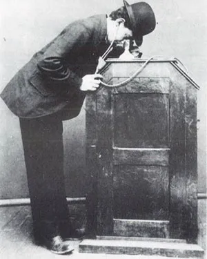 発明王トーマス・エジソンが1891年に特許を申請した動く映像を見るための装置。大勢でスクリーンに映写される動画を見るのではなく、ひとりずつ個別に箱の中を覗いて見る。キネトスコープの発売後、1894年にニューヨークではキネトスコープ・パーラーが開設され、店内に複数台のキネトスコープが並べられ、客が代金を支払って映像を鑑賞していた。