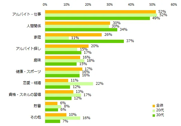 ★2017年にがんばったこと、第1位は「仕事・アルバイト」。20代は「恋愛・結婚」、30代は「家庭」のポイントが目立つ。