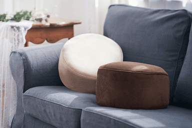 肌触りの良い起毛素材を用いた収納ケースが付いており、使わない時はコンパクトに収納して片付けることができます。収納した状態は、ふわふわのマシュマロのような形になり、インテリアに違和感なく馴染み、自宅リビングやオフィスのデスク下にすっきりと収納していただけます。また、収納状態でも約2,100gと軽量なので持ち運びも簡単です。