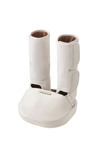 マッサージ機能は、両脚計14個(左右各7個)のエアーバッグを搭載しており、ブーツのようにひざ下全体に巻き付けて装着するだけで、疲れやすいふくらはぎからつま先まで脚全体をしっかりと包み込むようにマッサージします。可愛らしさと心地よさにこだわり、インテリア感覚でコンパクトに収納できる起毛素材の収納ケースを付けています。色は、裏地のピンクが可愛さを演出するショコラ(茶色)と、ソフトで落ち着きのある印象のバニラ(白色)の2色展開です。