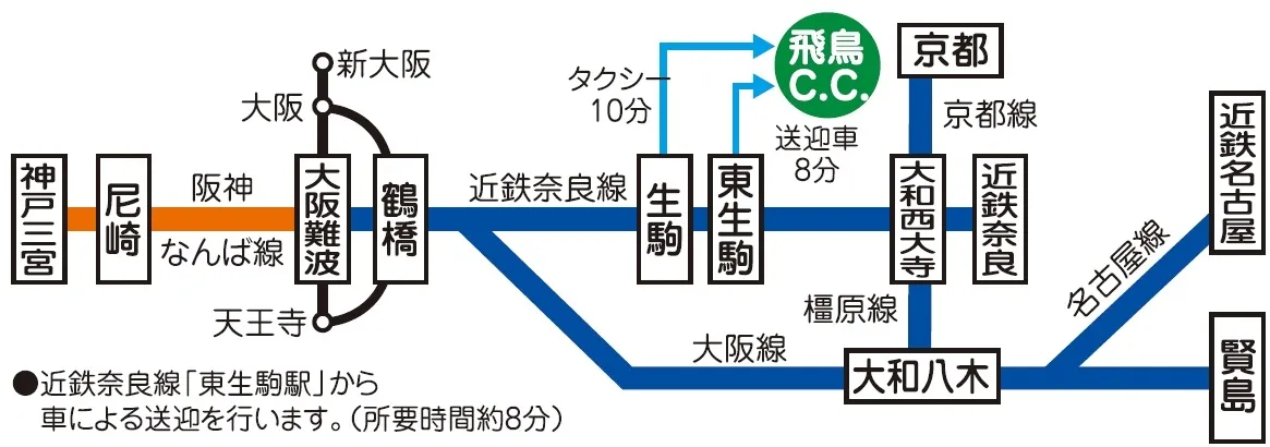 (8)アクセス 近鉄奈良線 東生駒駅下車・クラブバス約8分