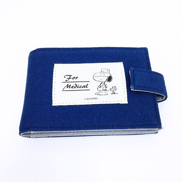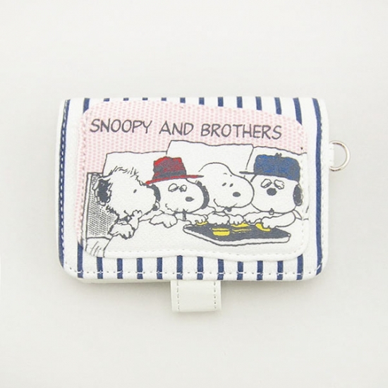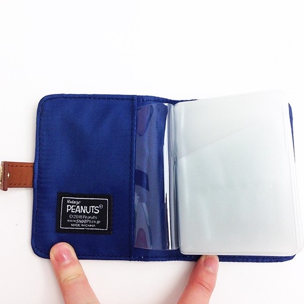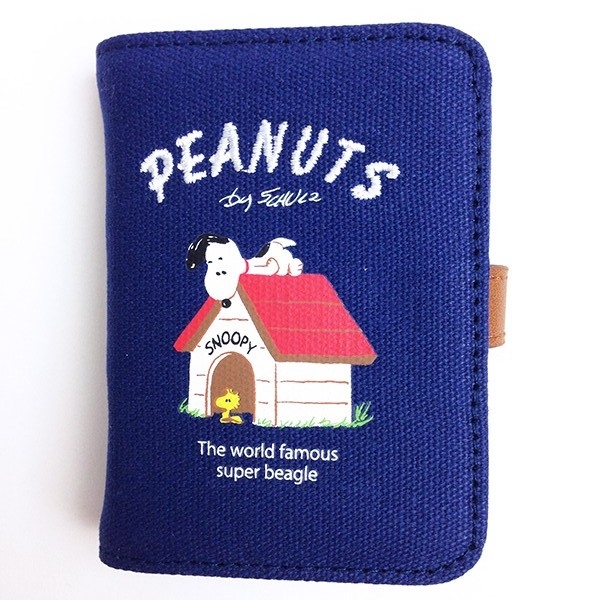 ドッグハウスの上のスヌーピーがキュートなカードケースです。シックなネイビーに、赤い屋根が目立っています。