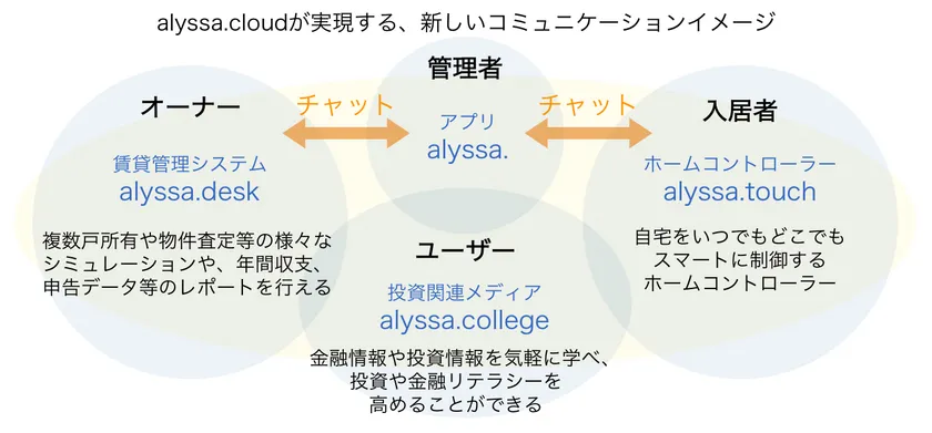 「alyssa.cloud(アリッサクラウド)」はユーザー・オーナー・入居者の三者の利用シーンに合わせて設計されています。
