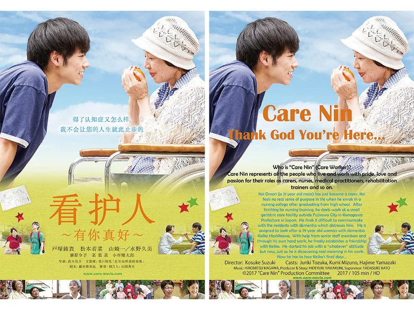 映画『ケアニン』製作委員会は、新人介護福祉士の成長を描いた映画『ケアニン~あなたでよかった~』が、2017年11月28日から中国・福州(福建省)で開催されている第4回シルクロード国際映画祭の日本映画週間、及び2018年1月12日からドイツ・デュッセルドルフで開催される第12回デュッセルドルフ日本映画週間での上映作品に選出されましたことをご報告いたします。