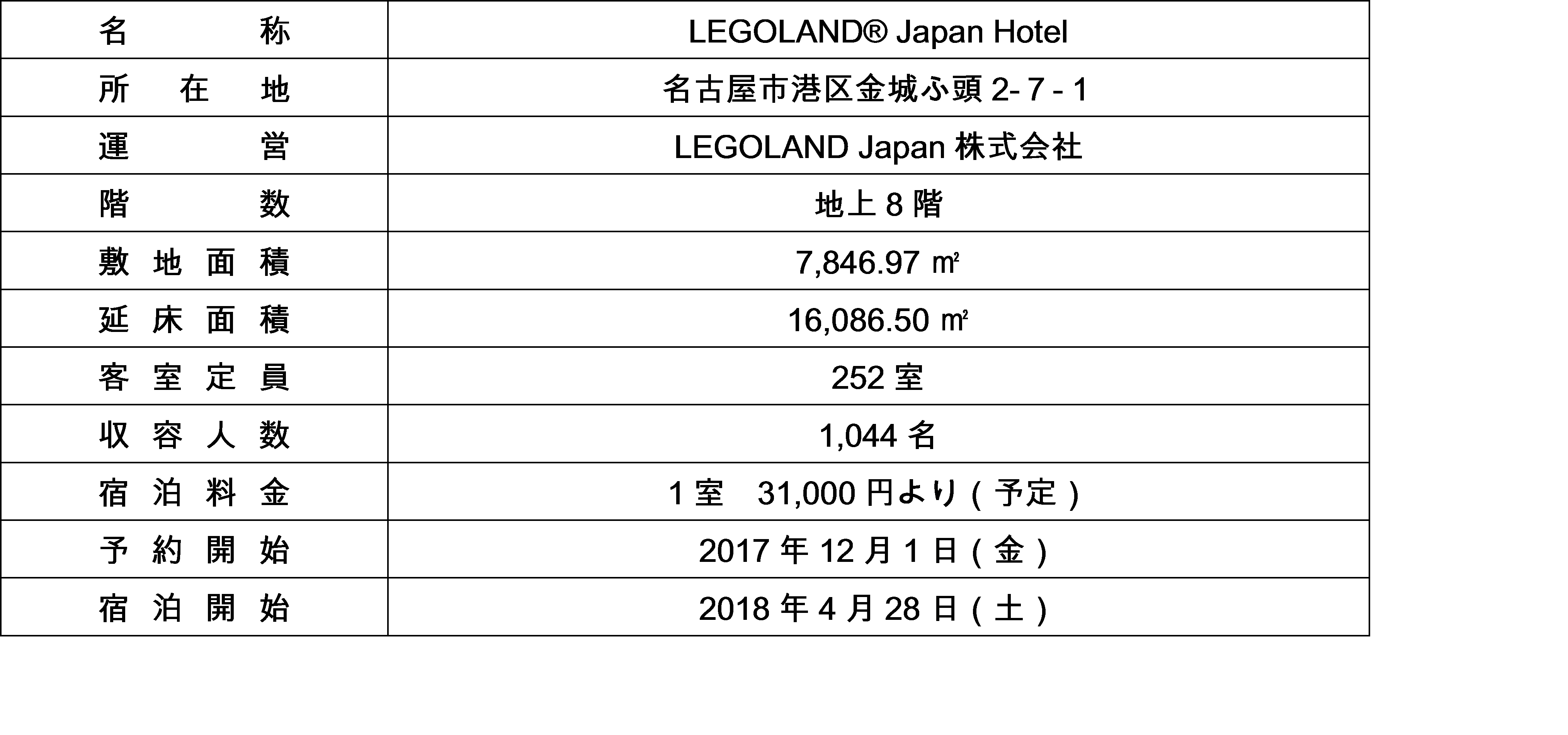 <LEGOLAND Japan Hotel 施設概要>