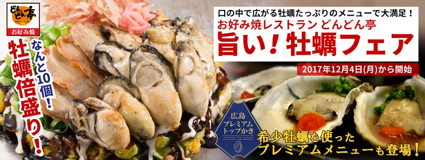 お好み焼きレストラン どんどん亭(本社:Miコーポレーション株式会社/福岡市博多区)は、2017年12月4日(月)より『旨い!牡蠣フェア』を開催いたします。