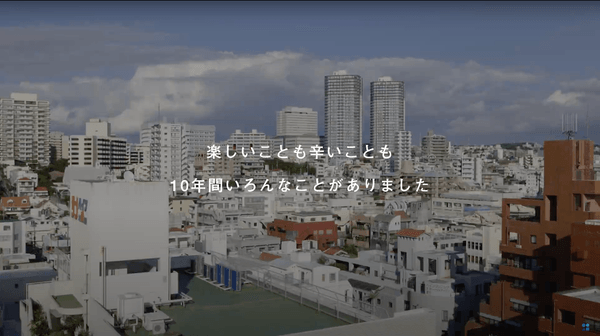 東京オフィス、沖縄オフィスで勤務する各メンバーのインタビュー映像と働く様子を素材として、10周年の歩みを振り返る記念ムービーを作成。
