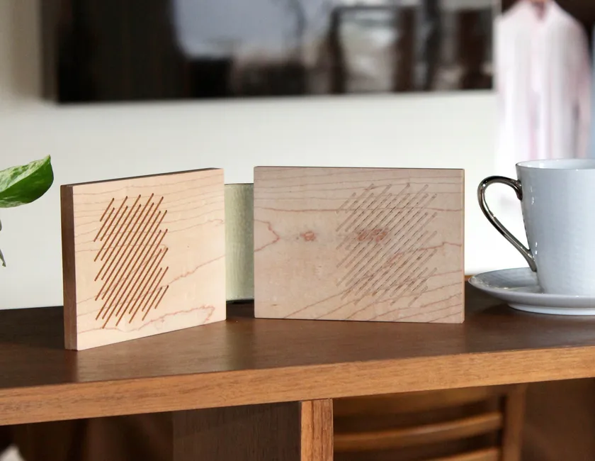 Bookspeaker:ハガキサイズの折りたたみ式のポターブルスピーカー 無垢の木のケース