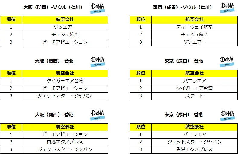 ※DeNAトラベルでの予約数と対象期間に予約のあった便数を基にランキングを作成しました。