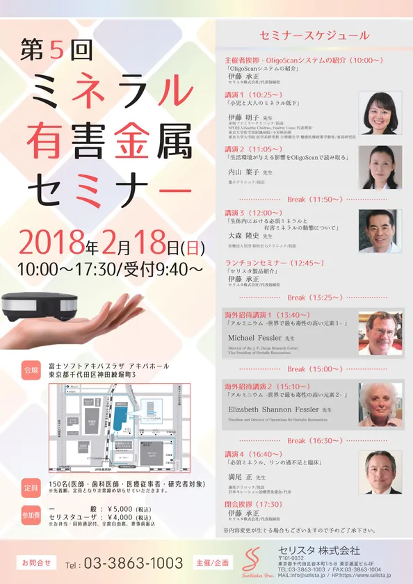 医療従事者対象「第5回ミネラル有害金属セミナー」を、 アキバプラザにて2018年2月18日に開催!