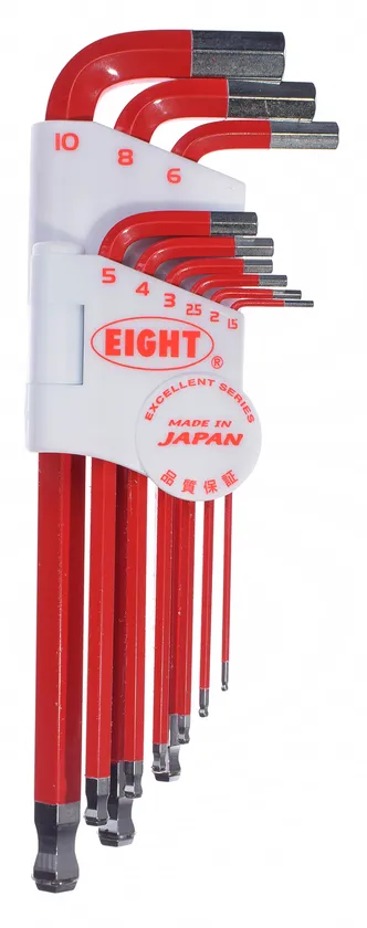 「エイト」はすべての製品を国内にて自社生産を行っており、六角レンチに最適な素材である特殊合金鋼「SNCM+V」を独自に開発するなどMADE IN JAPANならではの高品質な製品作りが特長です。