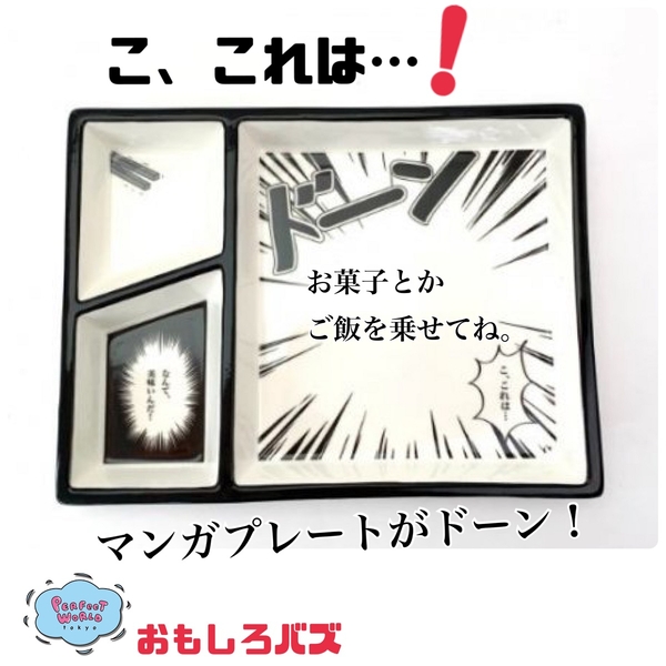 [おもしろバズ]マンガプレートがドーン!ごはんもドーン!と楽しくなるコミック風のプレートがアツい。ユーモアなプレゼントにも♪