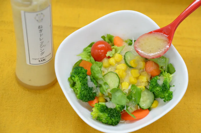 特徴 : ねぎ本来の甘み、りんご酢のさっぱりとフルーティな酸味がマッチした万能ドレッシング