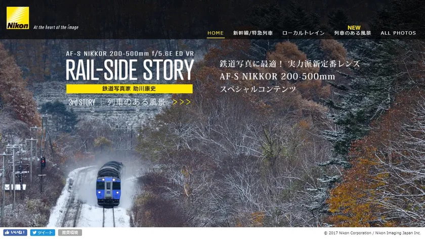 株式会社ニコンイメージングジャパン(社長:五代 厚司、東京都港区)はNIKKORレンズ「AF-S NIKKOR 200-500mm f/5.6E ED VR」のスペシャルコンテンツ「RAIL-SIDE STORY」-「3rd STORY 列車のある風景」-を2017年12月4日(月)に公開します。