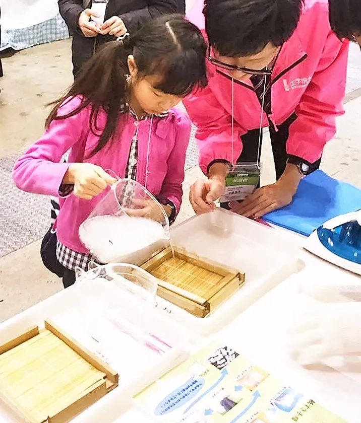●大学のエコ推進委員会が産学連携による「紙抄き体験」を実施し、みつばちプロジェクトが日ごろの養蜂活動から得た生態系や自然環境についての知見を紹介。