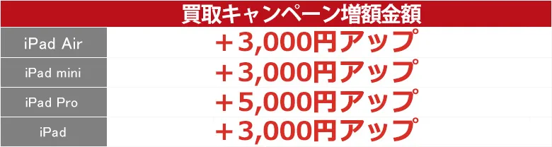 iPadの買取増額表