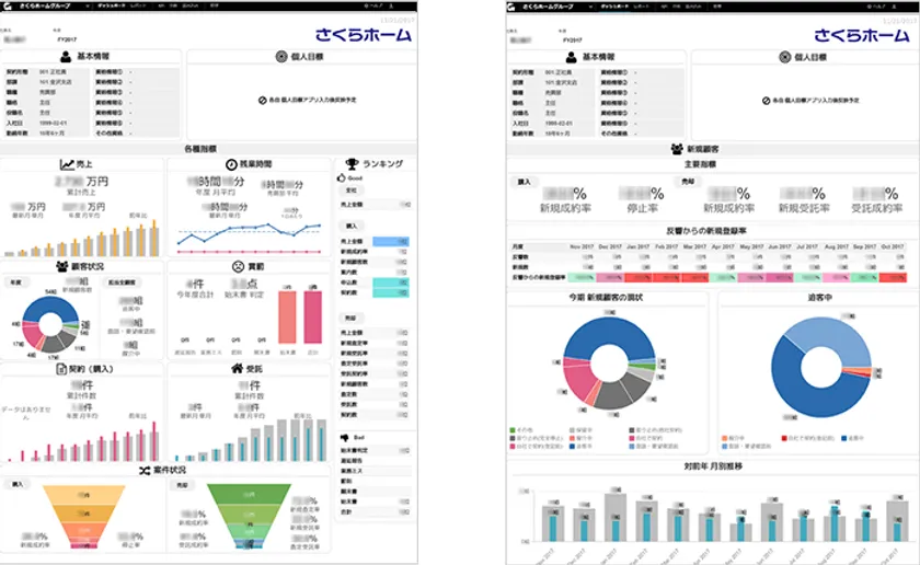 “くらし”に関わるサービスをワンストップで提供するさくらホームグループは、不動産仲介件数、新築着工件数では石川県トップクラスに位置しています。同社では、生産性向上を目指して、社員一人ひとりがデータをもとに現状を把握し、主体的に動くための組織づくりを行っています。その取り組みの一つとして、グループウェアに蓄積されたデータの活用がありました。しかし、現在利用しているグループウェアでは、複数のアプリケーションからのデータが見づらく、手動でレポートを作成する必要があり、時間と手間がかかっていました。