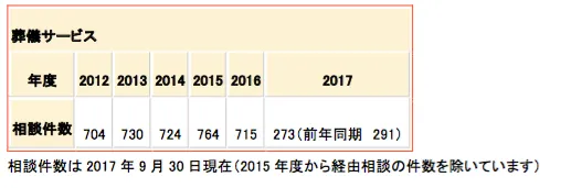 国民生活センターによると、葬儀サービスの相談件数は過去5年間は700件を超える相談が寄せられています。