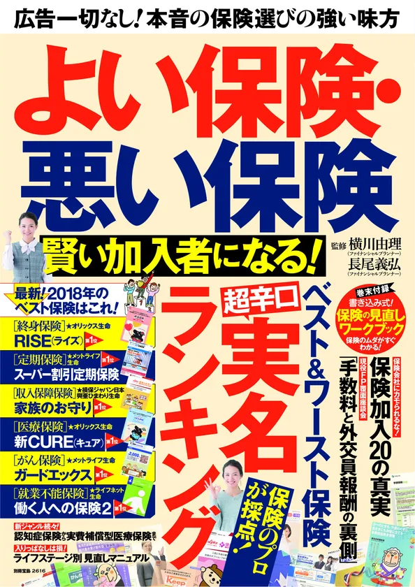 株式会社宝島社は、2017年12月9日(土)に、保険商品をジャンル別に実名でランキングしたムック、別冊宝島2616『よい保険・悪い保険 賢い加入者になる!』を発売しました。