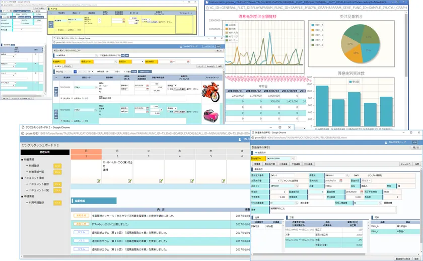■TALONの開発画面および、構築した業務システム画面のイメージ