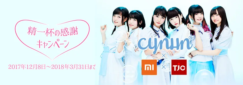 中国総合家電メーカー Xiaomi(シャオミ、小米科技)の正規代理店であるTJC株式会社(本社:東京都港区、代表取締役社長:程 鵬旭)は、テイチクエンタテインメントの新レーベル“I BLUE”の新人ボーカルユニット CYNHN(スウィーニー)とのコラボ企画である「CYNHN×Xiaomi×TJC 精一杯の感謝キャンペーン」を2017年12月8日(金)に開始いたします。