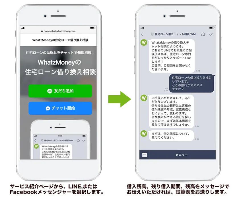 住宅ローン借り換えサービス「WhatzMoney ローン比較」 借り換えの無料相談をLINEとFacebookメッセンジャーで開始