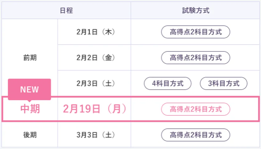 (1)一般入試 中期日程「2月19日(月)」を新設