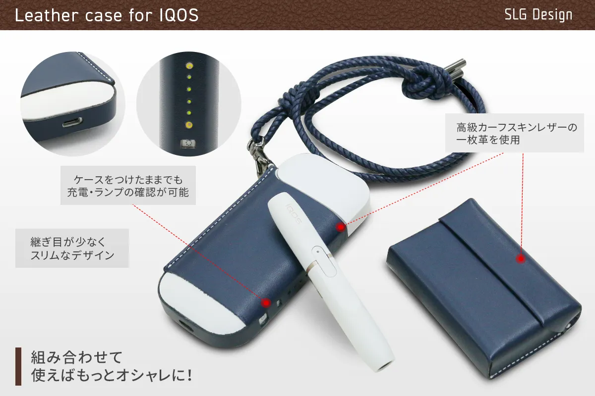 本製品は、上質なカーフスキンレザーを贅沢に使用したiQOSのポケットチャージャーとヒートスティック専用ケースです。一枚革を使用しているため継ぎ目が少なく、iQOSのスタイリッシュなデザインにぴったりのレザーケースです。2つを組み合わせて使うことにより、一層洗練された印象となるデザインです。