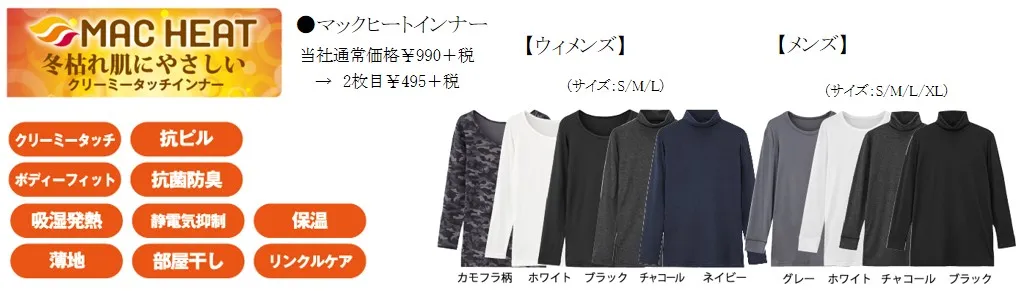 そして最高の暖かさをお求めの方は、かさね着不要なインナーMAC HEAT『超・特暖』はいかがでしょうか。