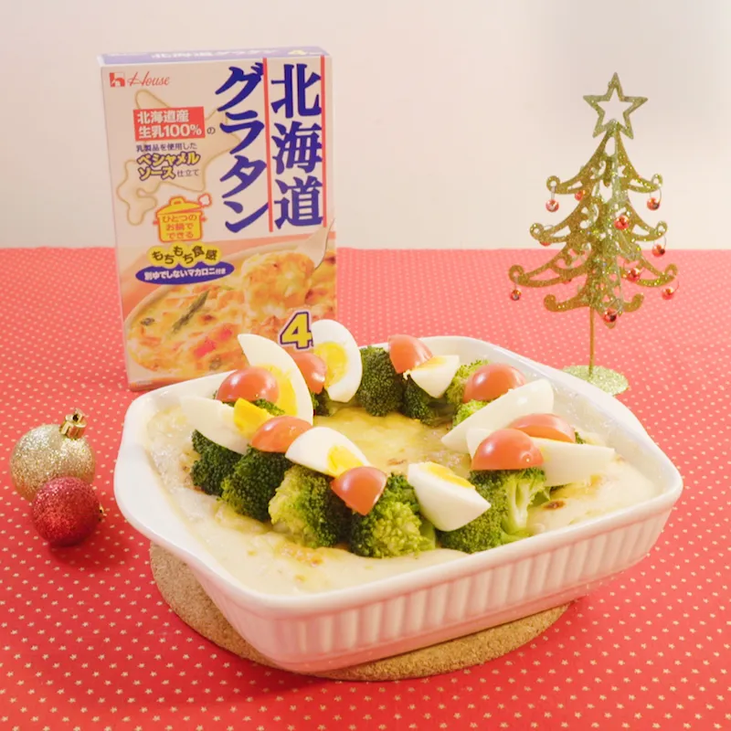 ・クリスマスリースのマカロニグラタン