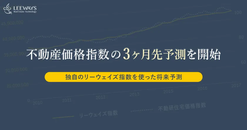 リーウェイズ株式会社(本社:東京都渋谷区、代表取締役社長:巻口 成憲、以下「リーウェイズ」)は、不動産市場価格の動向を表す「不動産価格指数」の3ヶ月先を予測するサービスを開始します。