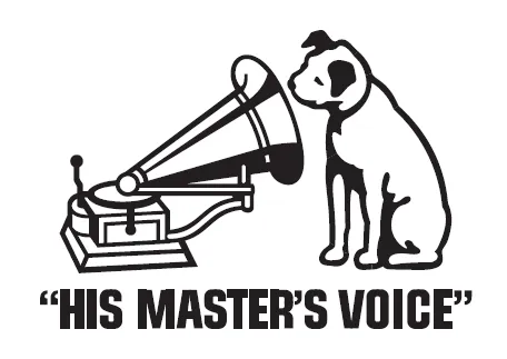 ニッパーは1884年にイギリスに生まれた実在した犬です。フォックステリア系の雑種で、蓄音機から聞こえる亡くなった主人の声を、不思議そうに聞き入る健気な姿を描いた名画「His Master's Voice」は、その後、日本では「Victor」の商標として広く親しまれることになりました。
